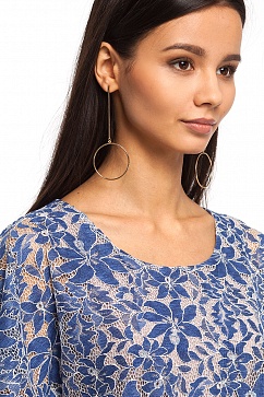 Укороченная блузка свободного силуэта с заужением книзу, покрой - летучая мышь. Изделие выполнено из кружевного полотна с цветочным узором на подкладке бежевого цвета.