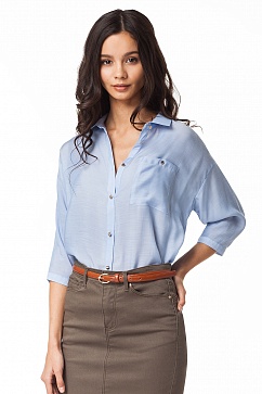 Блуза свободного кроя из смешанных волокон вискозы и полиэстера, которые обеспечивают комфорт и несминаемость ткани. Спущенный рукав длинной ниже локтя, манжет регулируется по ширине при помощи двух пуговиц. На груди накладной карман.