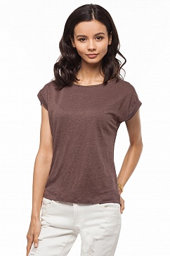 Футболка изготовлена из 100% ЛЬНЯНОГО трикотажного полотна. Изделие свободного силуэта с заужением к низу. Горловина изделия декорирована тонкой золотистой цепочкой.