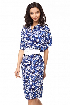 Платье-миди выполнено из фактурного вискозного полотна с трендовым цветочным узором. Свободный силуэт с заужением к низу драпируется по фигуре. Прекрасный вариант для элегантного повседневного образа. Стильный широкий ремень в комплекте.