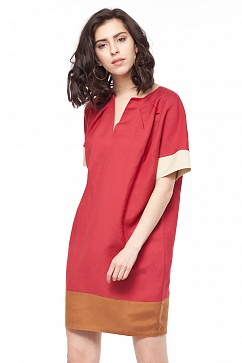 Изделие свободного силуэта с заужением к низу изготовлено из натурального льняного полотна с добавлением вискозы. Лаконичный дизайн дополнен глубоким V-образным вырезом и контрастными вставками. Такое платье станет идеальным вариантом на каждый день