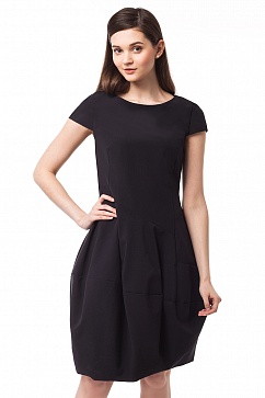 Ассиметричное коктейльное платье оригинального кроя изготовлено из мягкой эластичной костюмной ткани. Верхняя часть с плотным облеганием по фигуре, нижняя - пышная юбка "баллон". Небольшие втачные рукава, сзади застежка на молнию. Платье на эластичной подкладке.