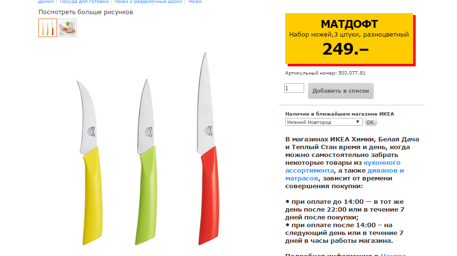 Набор ножей,3 штуки, разноцветный