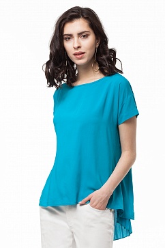 Яркая блузка свободного силуэта из мягкого вискозного полотна станет отличным вариантом на каждый день. Особенность изделия - эффектная удлиненная спинка с запАхом и плиссированной вставкой из плотного шифона.