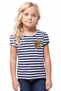 Футболка для девочки из эластичного трикотажного полотна с вышивкой пайетками в форме звезды. Горловина обработана обтачкой из основного полотна.