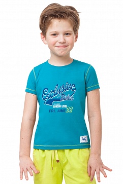 Футболка из эластичного хлопкового трикотажа. Изделие декорировано отделочными строчками контрастного цвета, принтом и текстильной нашивкой.