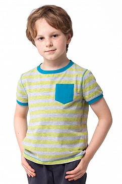 Футболка из эластичного принтованого хлопкового трикотажа. На груди накладной карман контрастного цвета. Изделие декорировано отделочными строчками контрастного цвета.