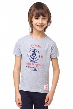 Футболка из эластичного хлопкового трикотажа. Изделие декорировано принтом и текстильной нашивкой.