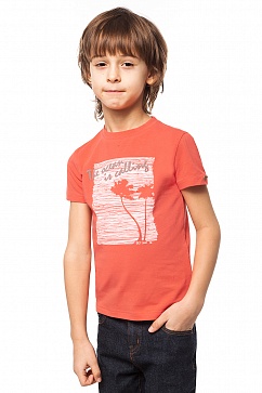 Футболка для мальчика из эластичного хлопкового трикотажа. Спереди декоративный принт. На рукаве декоративная нашивка с логотипом.