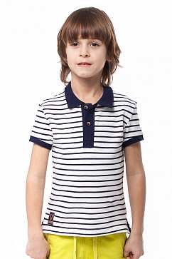Рубашка-поло для мальчика из эластичного трикотажа. Боковые разрезы обработаны тесьмой изнутри. Сбоку лейбл.