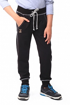 Спортивные брюки из футера с начесом. контрастными отстрочками. Пояс и манжеты по низу изделия из рибаны. Пояс на резинке с завязкой на шнурок. Изделие с контрастной отстрочкой и декоративной нашивкой с логотипом.
