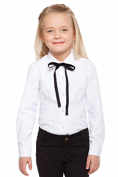 Классическая базовая блузка приталенного силуэта выполнена из хлопкового полотна. Отложной воротник дополнен съемным галстуком-бантом.