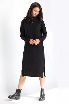 Must-have любого гардероба - удобное и функциональное платье-свитер. Модель прямого кроя выполнена из мягкого хлопкового трикотаж. Высокие боковые разрезы не сковывают движения.