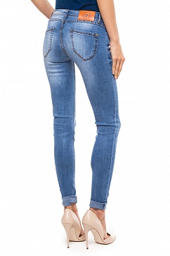 Джинсы-скинни на заниженной талии выполнены из эластичного светлого денима. Изделие с эффектом стирки и потертостями декорировано контрастными строчками. Джинсы скинни обязательная базовая вещь в повседневном гардеробе.