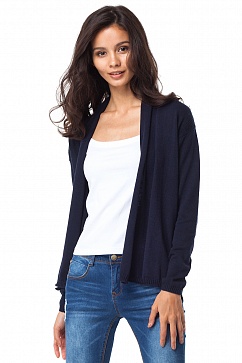 Жакет выполнен из мягкой хлопковой пряжи натурального цвета с эффектом меланж. Ассиметричная спинка дополнена декоративной вязкой вдоль центра спинки. Вязаный трикотажный жакет - универсальная и стильная вещь в любом сезоне.