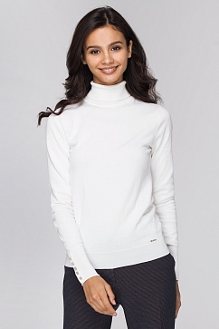 Однотонная трикотажная водолазка незаменимая вещь в каждом гардеробе. Изделие выполнено из хлопковой пряжи с добавлением нейлона для придания формоустойчивости изделию. В качестве декора широкие манжеты украшены рядом серебристых пуговиц.