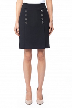 Юбка-трапеция с двумя рядами отделочных пуговиц спереди. Ниже пуговиц начинаются шлицы. Застежка на потайную молнию в заднем шве.