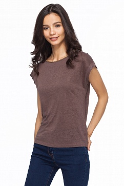 Футболка изготовлена из 100% ЛЬНЯНОГО трикотажного полотна. Изделие свободного силуэта с заужением к низу. Горловина изделия декорирована тонкой золотистой цепочкой.