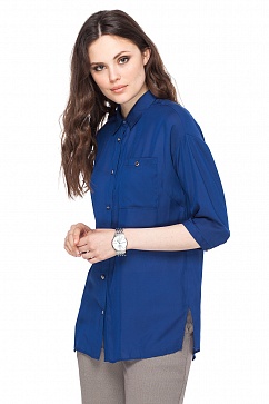 Блуза свободного кроя выполнено из смешанных волокон вискозы и полиэстера, которые обеспечивают комфорт и несминаемость ткани. Спущенный рукав, манжет регулируется по шири