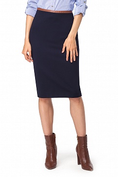 Юбка-карандаш выполнена из очень плотной и эластичной ткани "джерси". Пояс окантован мягкой искусственной кожей.