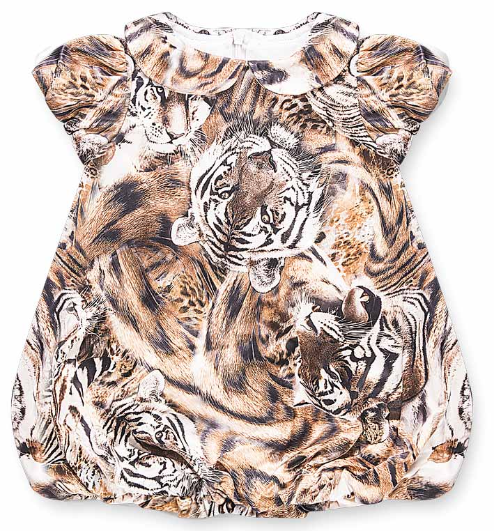 12324-SP Платье ткань верха: 35% хлопок 60% полиэстер 5%лайкра ткань подкладка: 95%хлопок 5%вискоза Шелковое платье на подкладке. Сзади - застежка - молния.Платье с тигровым принтом . Тигровый принг актуален не только во взрослой аудитории но и в детской моде, а ярковыраженное изображение тигра придает модели игривости. коричневый / Старая цена - 1390,00 руб. / Новая цена, с учетом скидки - 973 руб. / размер - 74