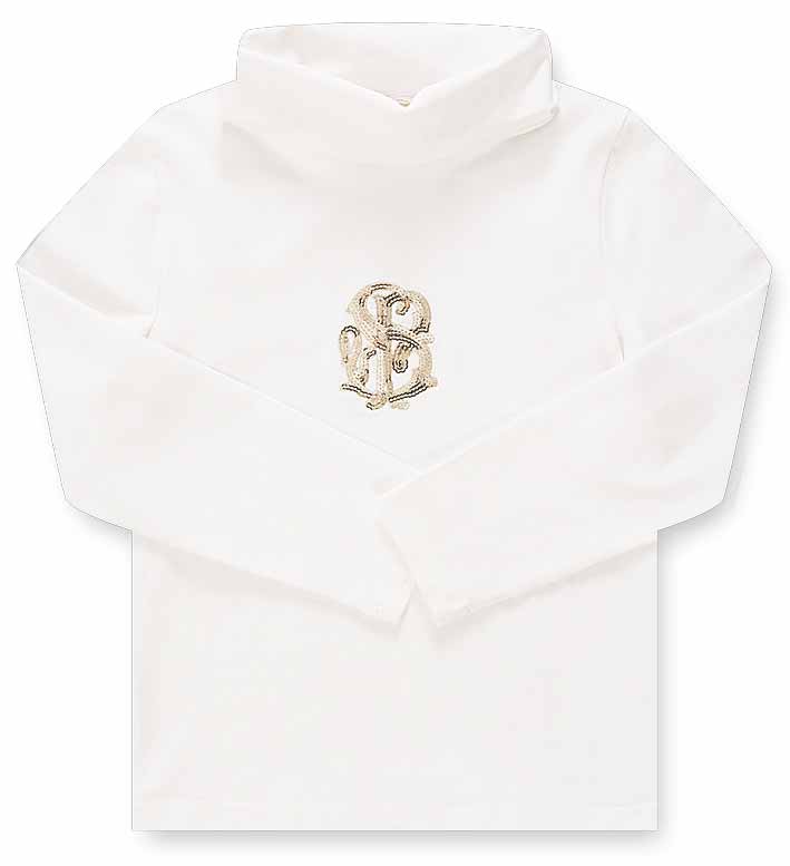 12643-SP Водолазка 95%хлопок5%лайкра Тонкий тикотаж . Вышивка золотыыми нитками и пайетками. Молочный / Старая цена - 860,00 руб. / Новая цена, с учетом скидки - 602 руб. / размер - 104