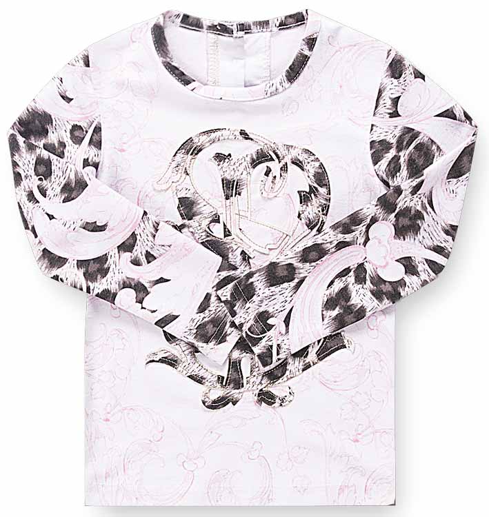 12356-SP Футболка длинный рукав 65%хлопок 30% полиэстер 5% лайкра Футболка трикотажная, все изображения - это принт. По принту золотые прозрачне стразы. Взади на планке две пробивные кнопки. леопард / Старая цена - 1190,00 руб. / Новая цена, с учетом скидки - 833 руб. / размер - 116