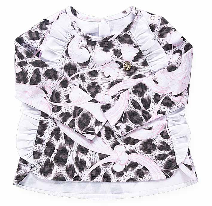 12334-SP Футболка длинный рукав 65%хлопок 30% полиэстер 5% лайкра Трикотажная, рюшки их хлопка. леопард / Старая цена - 1060,00 руб. / Новая цена, с учетом скидки - 742 руб. / размер - 86