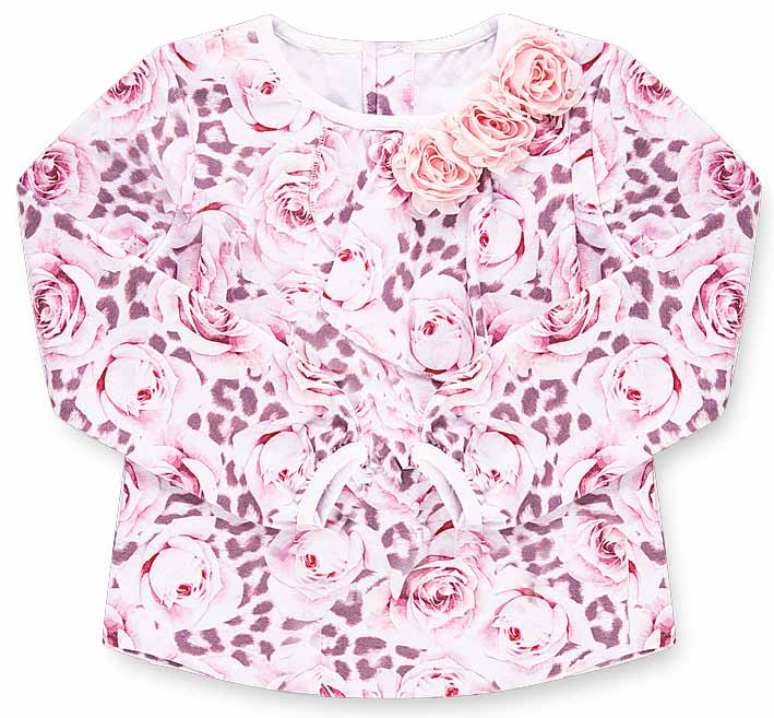 12365-SPB Блузка 65%хлопок 30% полиэстер 5% лайкра Шелковая блузка, брошь с цветами - съемная, рукавчик на резинке, сзади - планка 2 пуговицы, обитянутые шелком. Розовый / Старая цена - 1120,00 руб. / Новая цена, с учетом скидки - 784 руб. / размер - 98