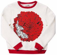 12306-N СвитШот 65% хлопок 35% полиэстер Толстовка футер,горловина и манжеты красная рибана. Принт декорированкрасными стразами, а в середине цветка красными камнями пришивными. Лого из красных страз. молочный/красный 1720,00 руб. / Новая цена, с учетом скидки - 1204 руб. / размер - 162