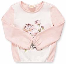 12051-C Футболка длинный рукав 95%хлопок 5%спандекс Шелковая туника. Молочный шелк, цвет его соответствует цвету молочного тиркотажа.. Плисерованный шифон. Рукава на тонкой резинке. Горловина окантована шелком. Пуговица преламуттровая. . На принте стразы диаметром 2-4мм, цветов С118, С136 молочный/Розовый 1250,00 руб. / Новая цена, с учетом скидки - 875 руб. / размер - 104