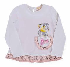 12130-F Футболка длинный рукав 95% хлопок5%лайкра Футболка с длинным рукавом. Трикотаж по карте TM1010 No2. Атлас. Два принта со стразами. Застежка как в образце модели 12133. Пуговиицу перламутровую белую оставили. Рюшки на спинке настрачиваются на трикотаж. Размеры бантика прописали на листе с эскизом. Бантик пришевной. Вокруг кармана рюшка из шелка. Молочный 1060,00 руб. / Новая цена, с учетом скидки - 742 руб. / размер - 98