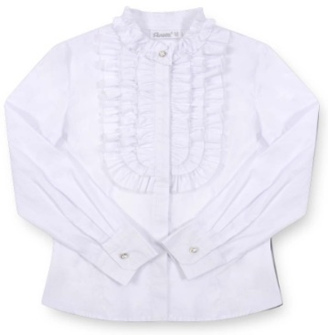 Pinetti School 11939 Блузка длинный рукав 65%хлопок33%полиэстер2%эластан Блузка из хлопка с длинными рукавами и воротником стойка. По переду и воротникуц декорирована настрочными оборками из основной ткани. белый /цена - 1610,00 руб. / размер - 164