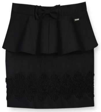 Pinetti School 11785-E Юбка 65%хлопок35%полиэстер Юбка-карандаш из костюмной ткани, с отрезной баской и декоративным съемным бантом (спереди). По низу декорирована кружевом. Застежка на металлическую молнию. черный / ЦЕНА - 1920,00 руб. / размер - 164