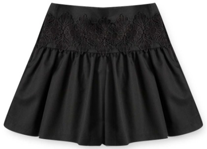 Pinetti School 11783-E Юбка 65%хлопок35%полиэстер Юбка расклешенная "в сборку"с кокеткой. Застежка на потайную молнию сбоку. Декорирована кружевом по кокетке. черный / ЦЕНА - 1900,00 руб. / размер - 170