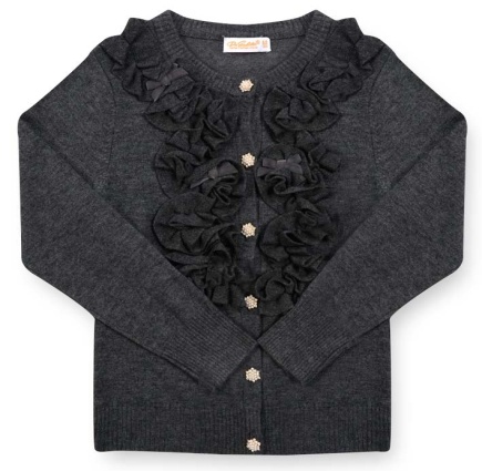 Pinetti School 11932 Кардиган 65%хлопок30%полиэстер5%эластанс Жакет вязанный с длинными рукавами.Застежка на пуговицы. Декорирован вязанными рюшами. темно-серый / ЦЕНА - 2350,00 руб. / размер - 130