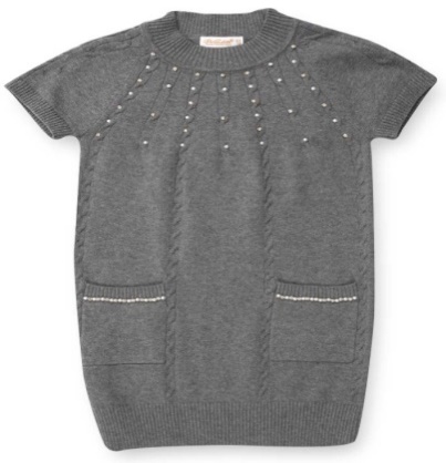 Pinetti School 11908 Туника вязанная 89%хлопок10%нейлон1%спандекс Туника вязанная с короткими рукавами и накладными карманами. Декорирована пришивными жемчужинами. темно-серый / ЦЕНА - 1700,00 руб. / размер - 158