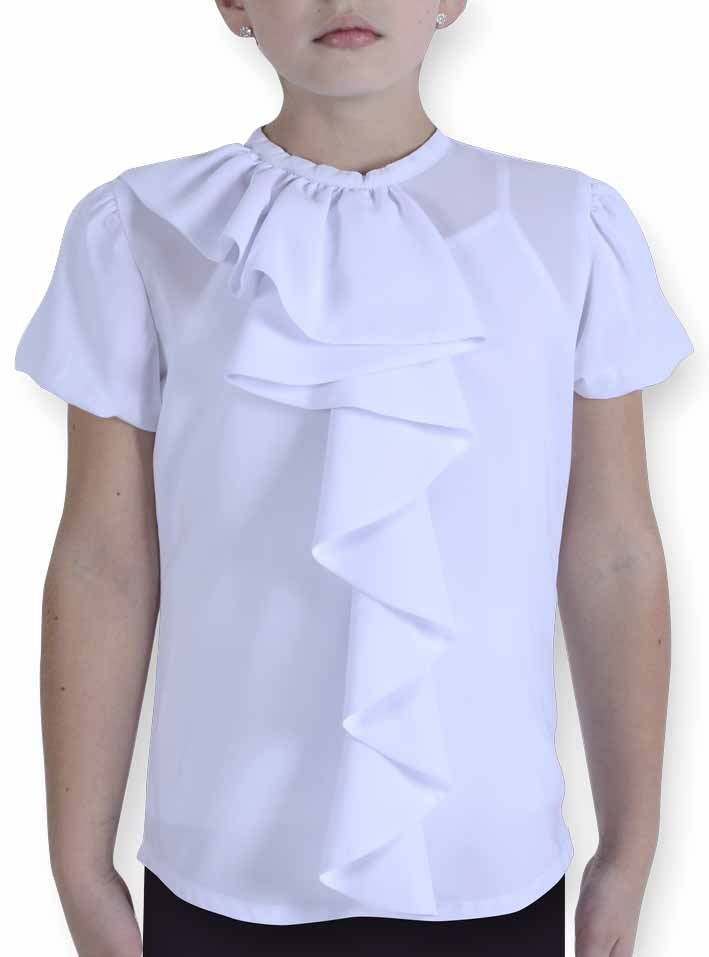 Pinetti School 11840-SET Блузка короткий рукав верх 100%полиэстер майка 95%хлопок5%спандекс Блузка шифоновая двойная с трикотажной майкой. Без воротника, с короткими рукавами, декорирована шифоновой рюшей на полочке. Застежка на потайную молнию сбоку. белый /цена - 1360,00 руб. / размер - 158