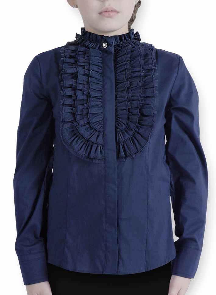 Pinetti School 11939 Блузка длинный рукав 65%хлопок33%полиэстер2%эластан Блузка из хлопка с длинными рукавами и воротником стойка. По переду и воротникуц декорирована настрочными оборками из основной ткани. темно-синий /цена - 1610,00 руб. / размер - 170