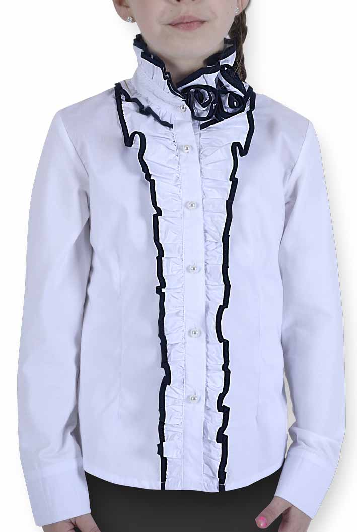 Pinetti School 11950 Блузка длинный рукав 65%хлопок33%полиэстер2%эластан Блузка из хлопка с длинными рукавами и воротником стойка. По воротнику и планке декорирована рюшей из хлопка с контрастной отделкой. Застежка на пуговицы. белый/синий /цена - 1770,00 руб. / размер - 164