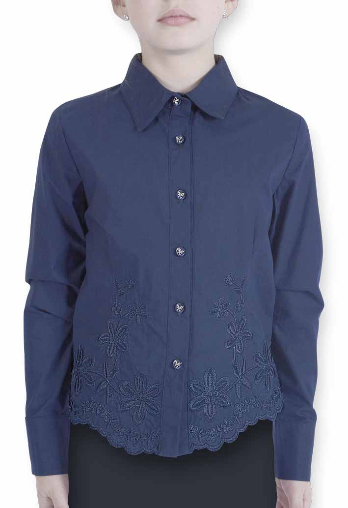 Pinetti School 11951 Блузка длинный рукав 65%хлопок33%полиэстер2%эластан Блузка из хлопка с длинными рукавами, отложным воротником, с фигурным низом и вышивкой по нему. Декорирована съемной брошью. Застежка на пуговицы. темно-синий /цена - 1730,00 руб. / размер - 170