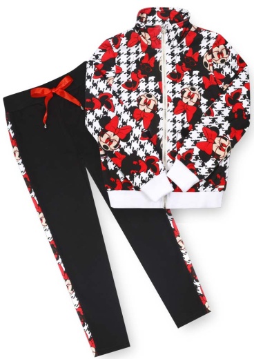 Pinetti School 11758-SET Спортивный костюм 95%хлопок5%эластан Костюм спортивный из плотного трикотажа. Кофта из плотного принтованного трикотажа с боковыми карманами и воротником стойка, застежка на молнию.Брюки из плотного трикотажа однотонные, по бокам принтованныем вставки. черный/красный / ЦЕНА - 3540,00 руб. / размер - 152