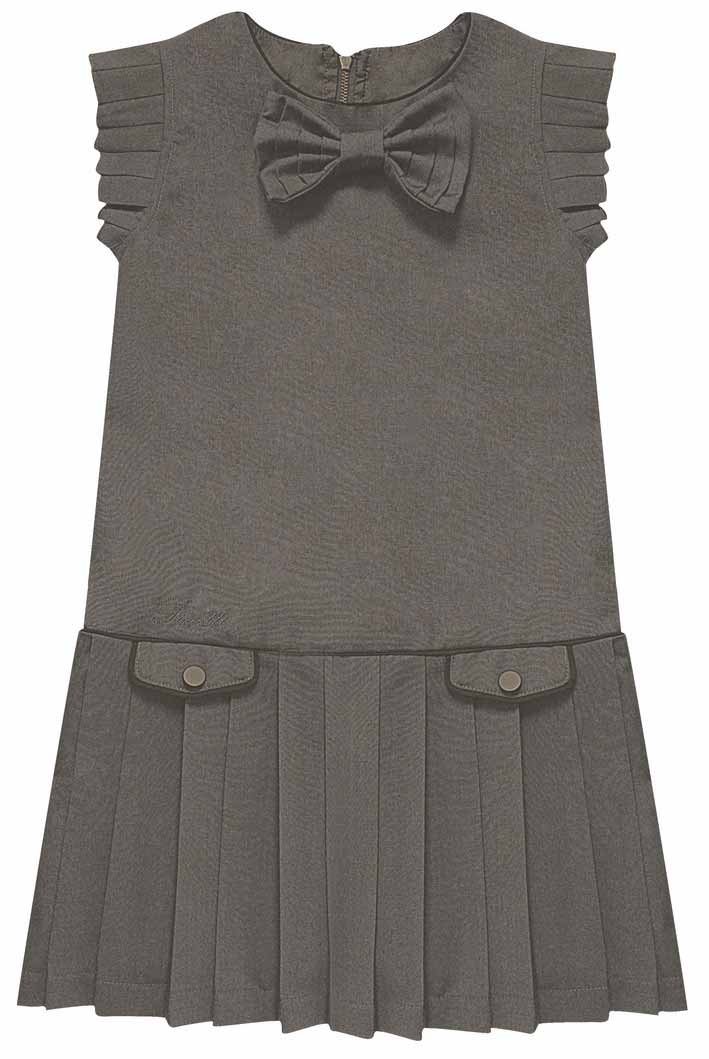Pinetti School 11801-C Платье 65%хлопок35%полиэстер Платье из костюмной ткани трапецевидного силуэта без рукавов, отрезное по линии бедер, нижняя часть "в складку". По линии бедер декорировано накладными карманами клапанами и съемным бантом у горловины. Застежка сзади на металлическую молнию. серый / ЦЕНА - 2150,00 руб. / размер - 158