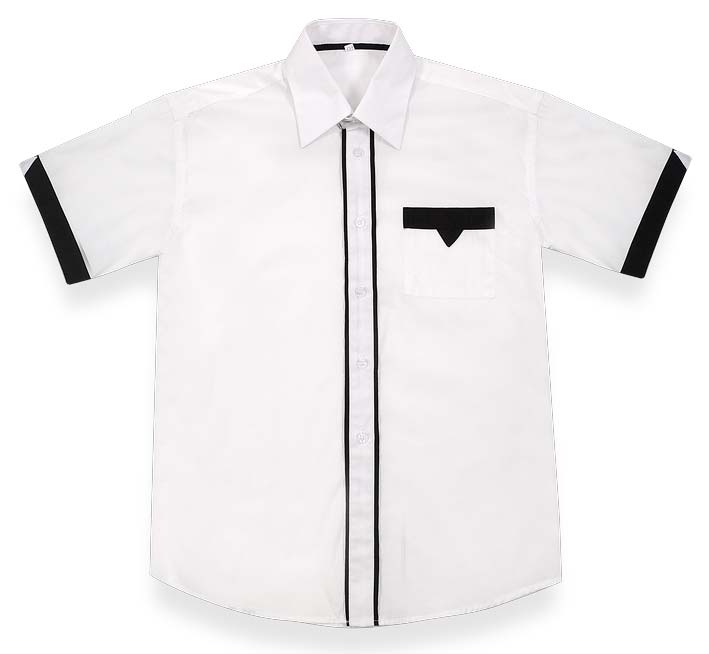 Верхний и нижний воротники выполнены из отделочной гладкокрашеной хлопчатобумажной ткани в тональном сочетании с основным тоном основной ткани. По воротнику и низу изделия проложена отделочная строчка на расстоянии 5 мм ." белый / цена - 1070 руб. / размер - 164
