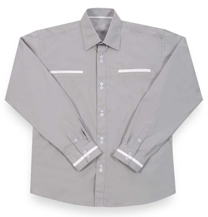 Перед - с прорезными карманами с листочкой и центральной застежкой до верха на 10 вертикальных обметанных петель и 10 пуговиц.Рукава - втачные типа <<рубашечные>>, с притачными манжетами по низу, застегивающимися на две обметанные петли и две пуговицы; с настрочной планкой вдоль разреза в шве соединения с надставкой. Воротник - стояче-отложной на отрезной стойке, застегивающейся на одну горизонтальную обметанную петлю и пуговицу.