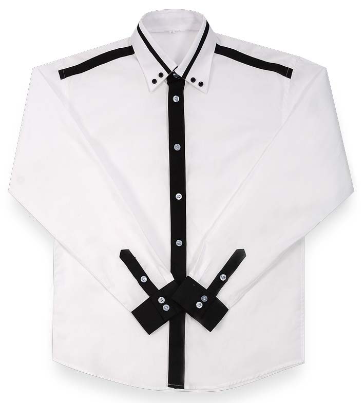 Верхний и нижний воротники выполнены из отделочной гладкокрашеной хлопчатобумажной ткани в тональном сочетании с основным тоном основной ткани. По воротнику и низу изделия проложена отделочная строчка на расстоянии 5 мм ." белый/черный / цена - 1230 руб. / размер - 182