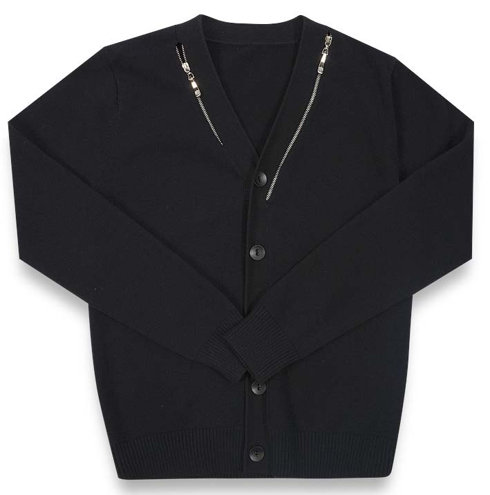 Pinetti School 57573 Кардиган 89%хлопок10%нейлон1%спандекс Кардиган из вязанного трикотажа с длинными рукавами,с v-образным вырезом и застежкой на 5 пуговиц. По горловине декорирован вшитыми молниями. черный / цена - 2050 руб. / размер - 130