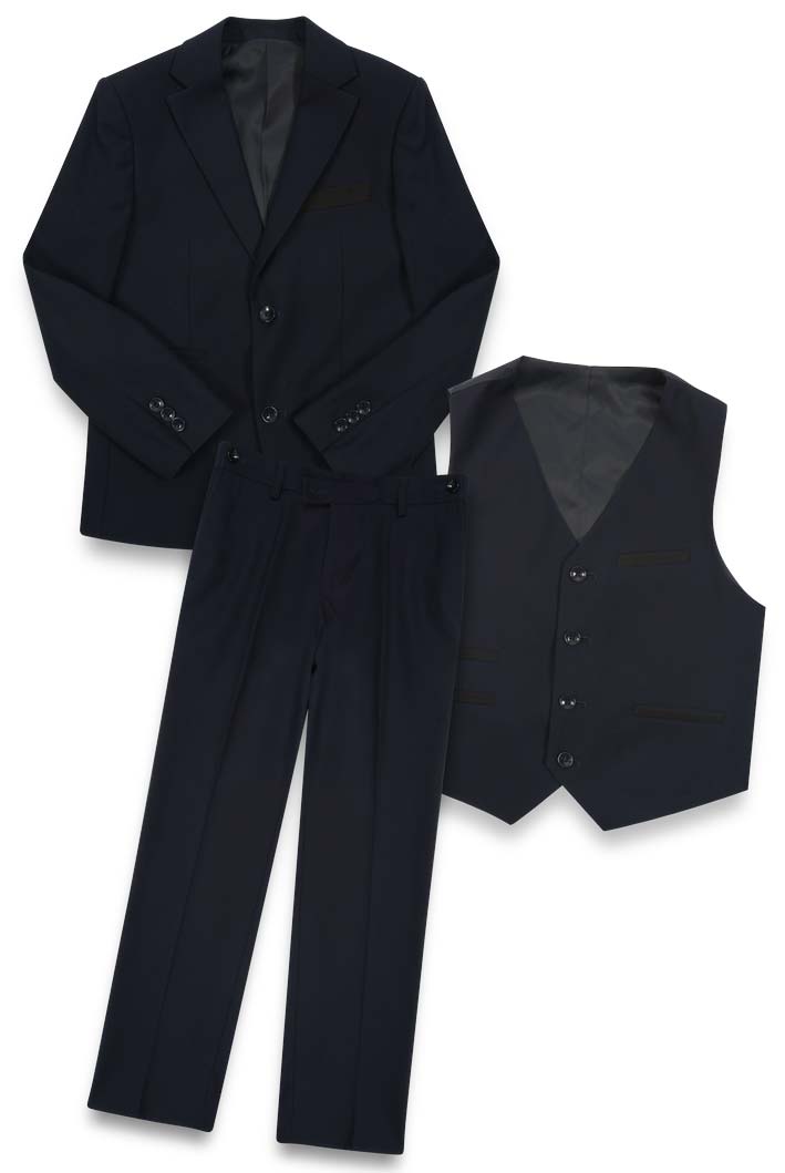Pinetti School 57580-SET Костюм тройка 65%полиэстер35%вискоза Костюм.Пиджак однобортный,приталенный из костюмной ткани, рукава втачные одношовные, перед с отложными лацканами с острыми углами до линии талии; с отрезными бочками; с верхним прорезным карманом с листочкой и нижним карманом клапаном и двумя листочками;воротник - отложной с отворотом,верхний воротник - с отрезной стойкой. Жилетка из костюмной ткани на подкладе с принтом; с верхним карманом листочкой;с талиевыми вытачками, переходящими в подрезе в боковые прорезные карманы с горизонтальным входом. На спинке средний шов и регулирующийся ремешок. Брюки классические, со стрелками. Брюки с внутренней застежкой на тесьму <<молнию>> и 1 обметанную петлю. На п/п брюк прорезные карманы <<в листочку>>. Верхний срез п/п брюк обработан притачным поясом. З/п брюк - с вытачками. И карманом листочкой. синий / цена - 4810 руб. / размер - 134