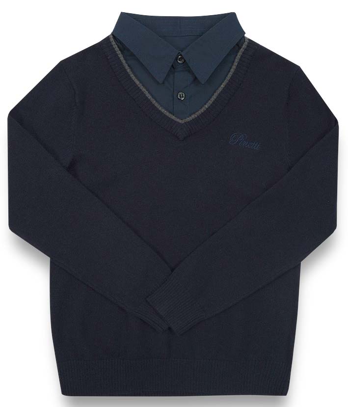 Pinetti School 57575 Обманка 65%хлопок35%полиэстер Обманка комбинированная из хлопка и трикотажа, с отложным воротником и длинными рукавами. темно-синий / цена - 2020 руб. / размер - 140