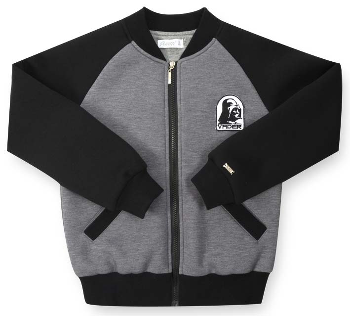 Pinetti School 57568 Кардиган 65%хлопок35%полиэстер Бомбер комбинированный из плотного трикотажа с длинными рукавами реглан и прорезными карманами, с настрочным шивроном на полочке, с застежкой на молнию. серый/черный / цена - 2880 руб. / размер - 128